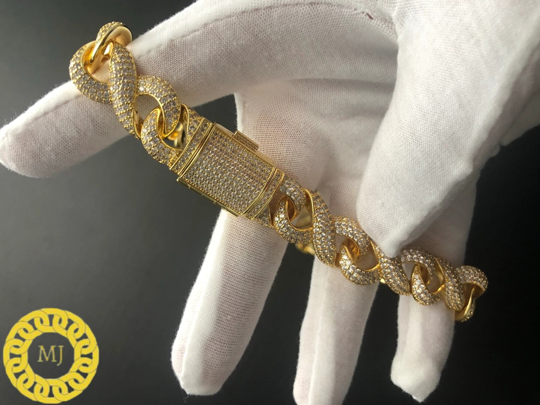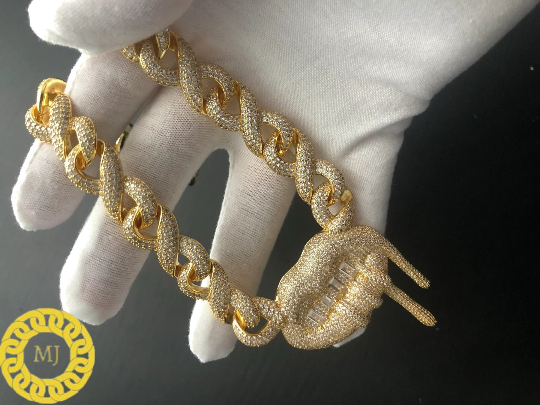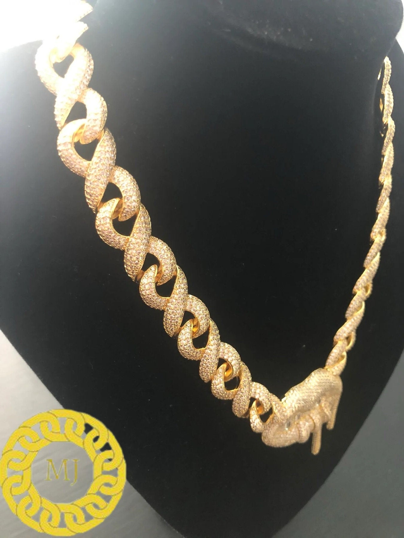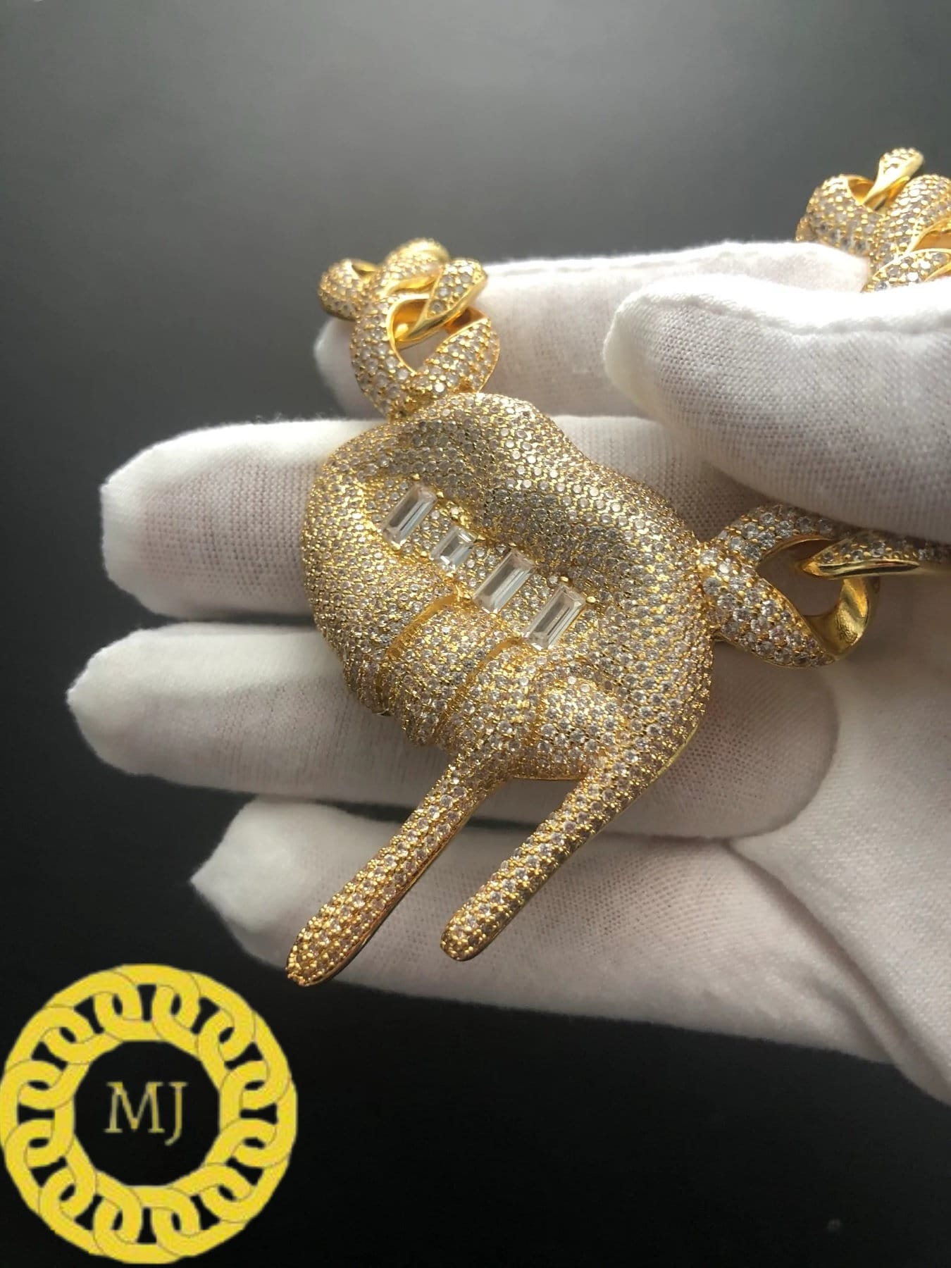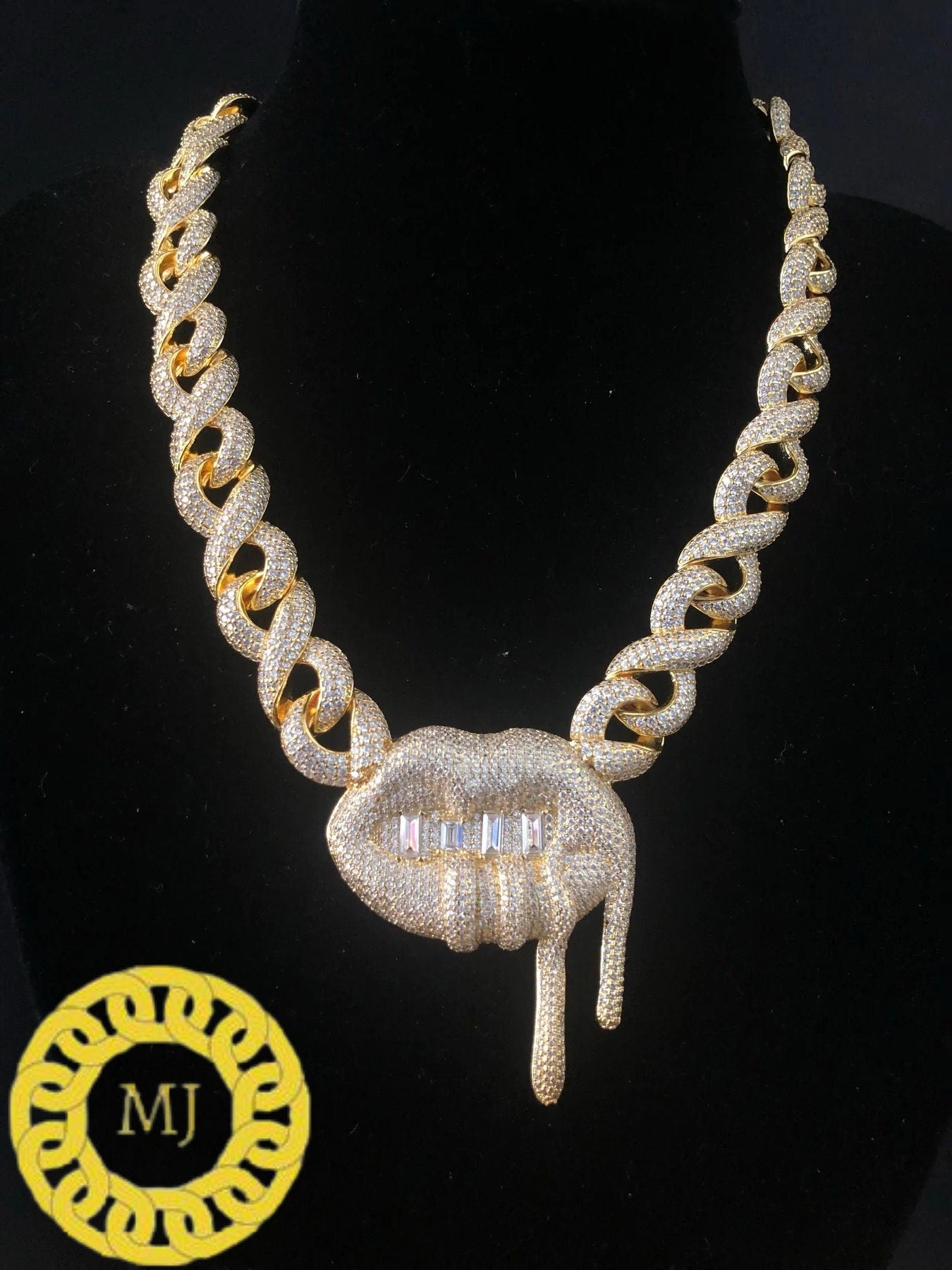 Heavy Solid 925 Sterling Silver VVS1 Moissanite Diamonds Studded lips infinity Chain,Icedout Rapper chains,16mm wide, Quality Box Clasp