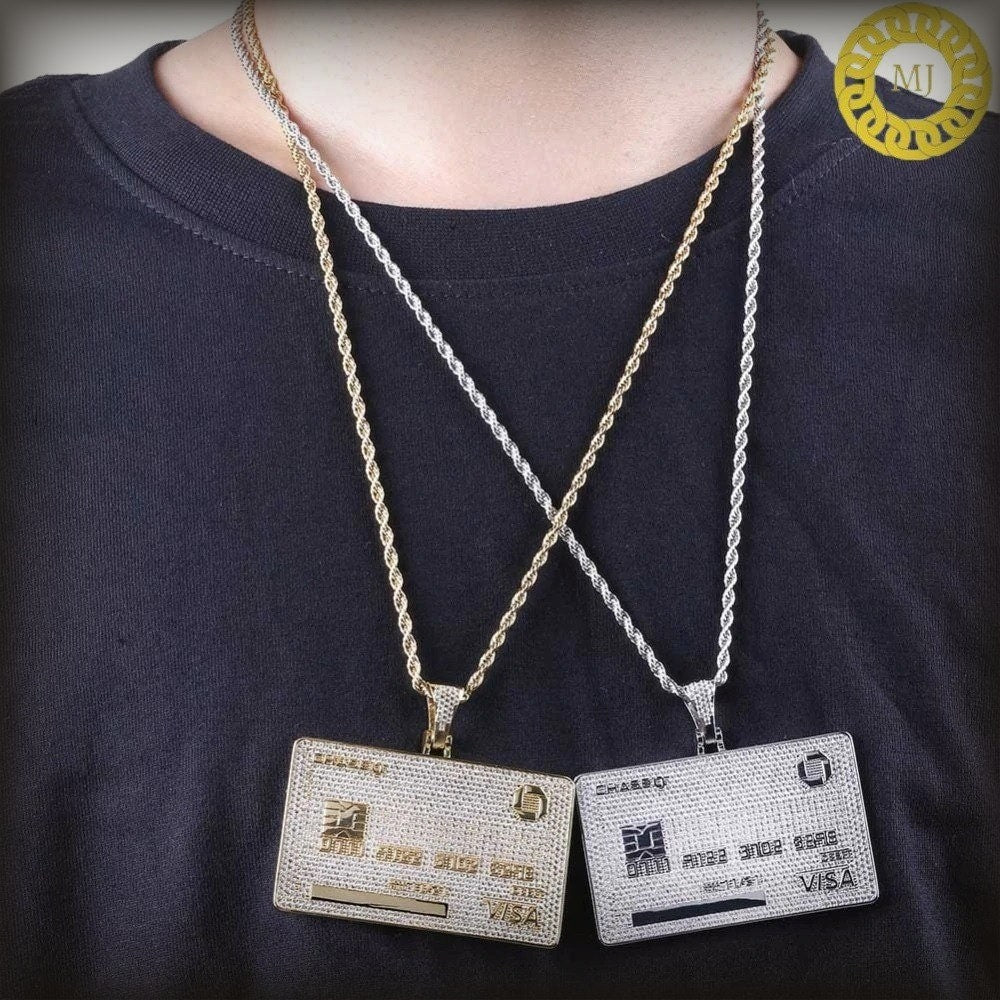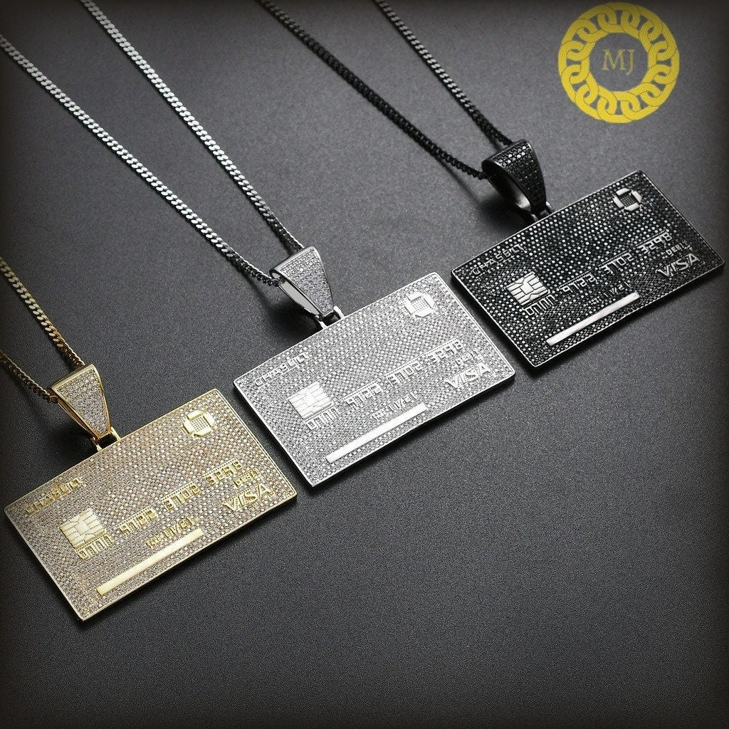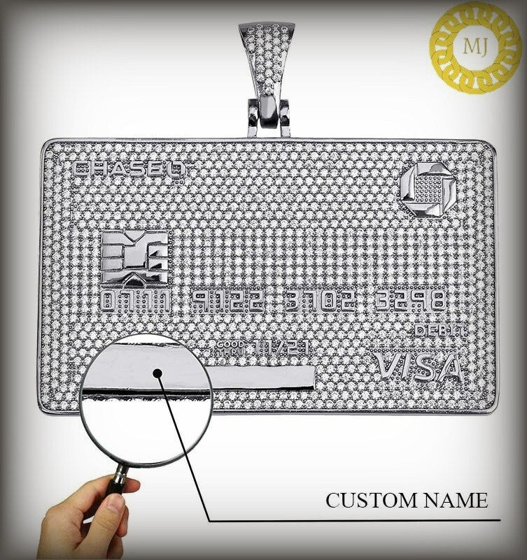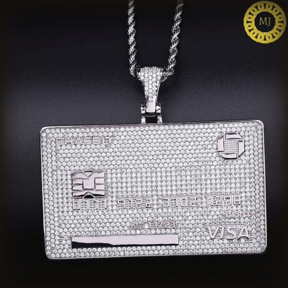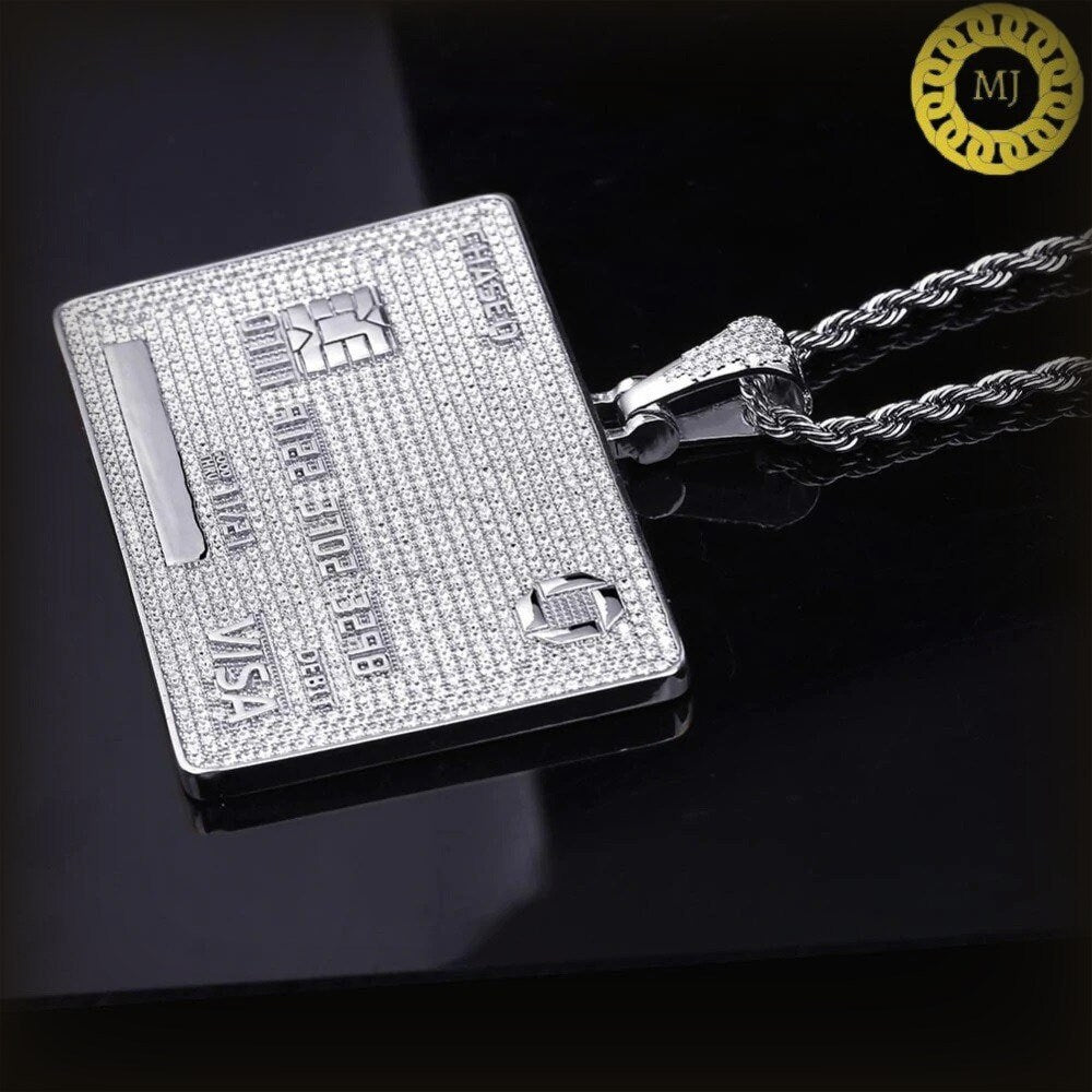 HIP HOP PENDANT,Moissanite Pave Diamond Hip hop Credit Card Pendant, Sterling Silver Hip Hop Pendant , Mens Hip Hop Pendant , Git For Him