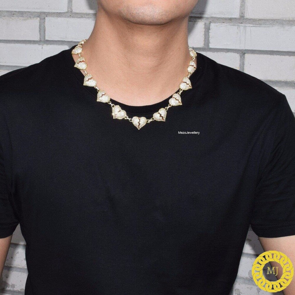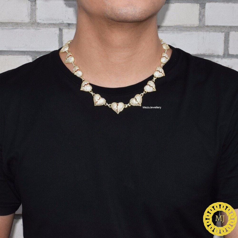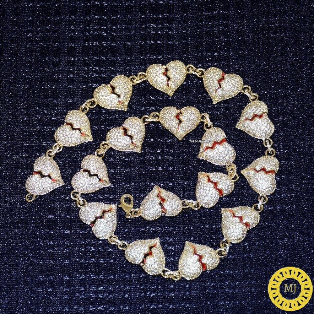 Iced Out Broken Heart Cuban Link Necklace Solid 925 Sterling Silver VVS1 Moissanite Diamonds Studded Cuban Chain,Rapper chains,12mm wide