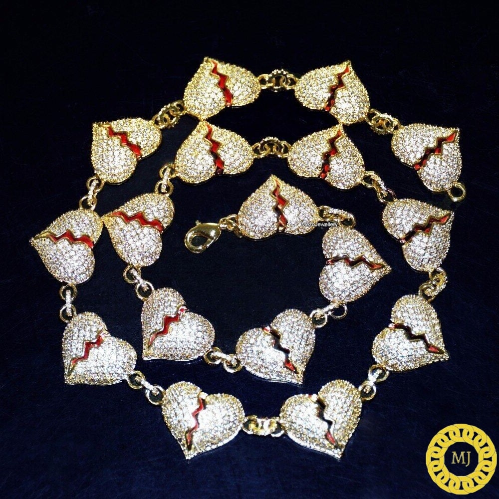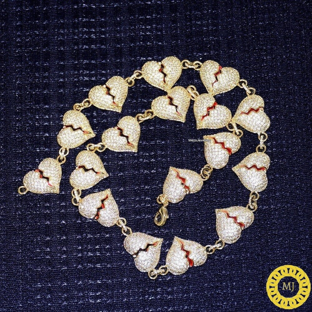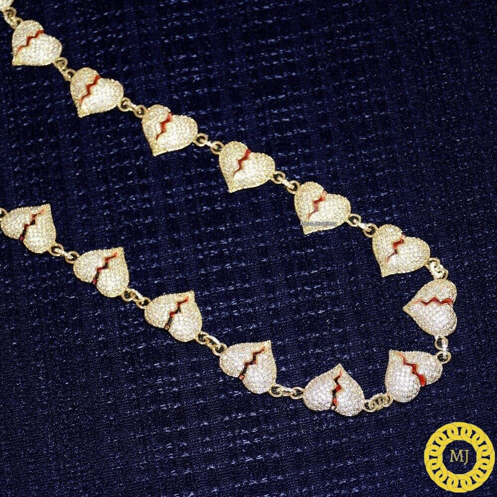 Iced Out Broken Heart Cuban Link Necklace Solid 925 Sterling Silver VVS1 Moissanite Diamonds Studded Cuban Chain,Rapper chains,12mm wide, Moissanite studed Pass The Diamond Tester Test