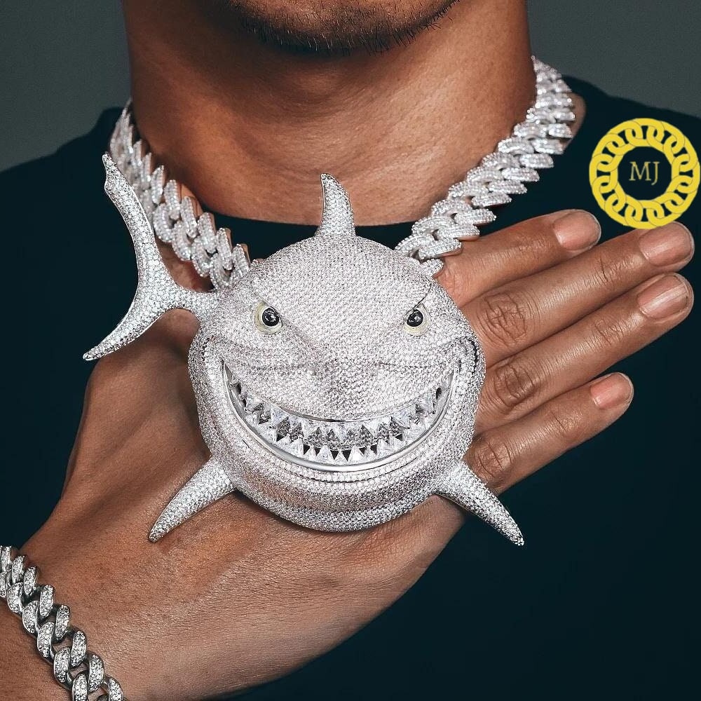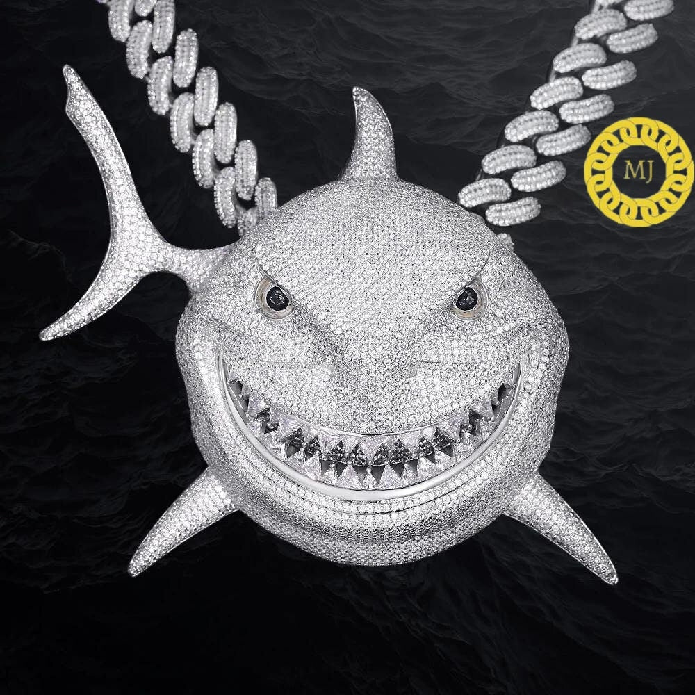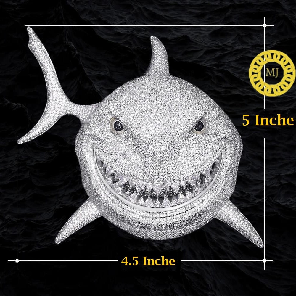 Iced Out Shark Pendant Necklace Gifts for Him,Hip Hop Jewelry Icy Shark Necklace With Cuban Chain,VVS Moissanite Shark Necklace Choker Charm Big shark pendant