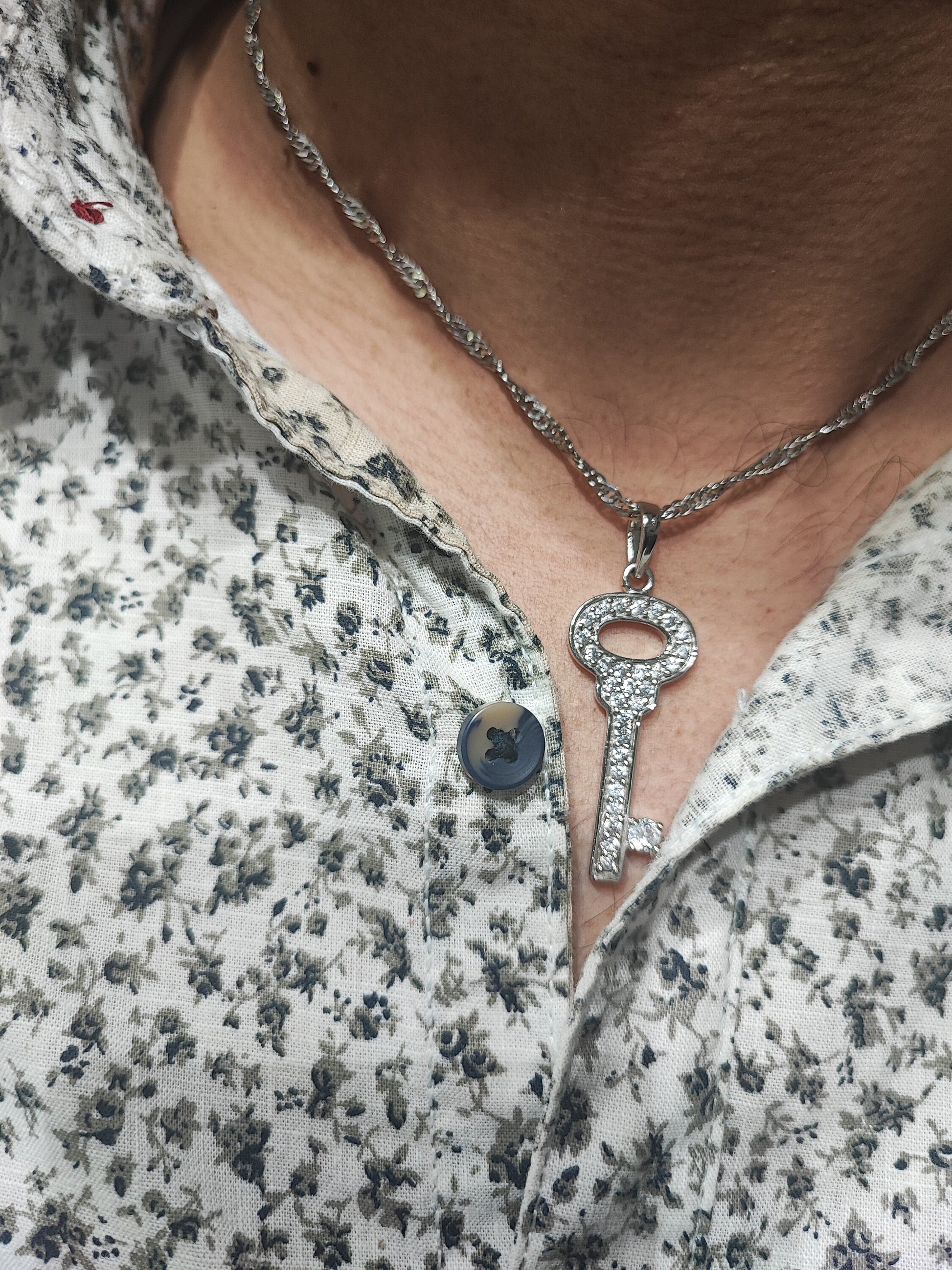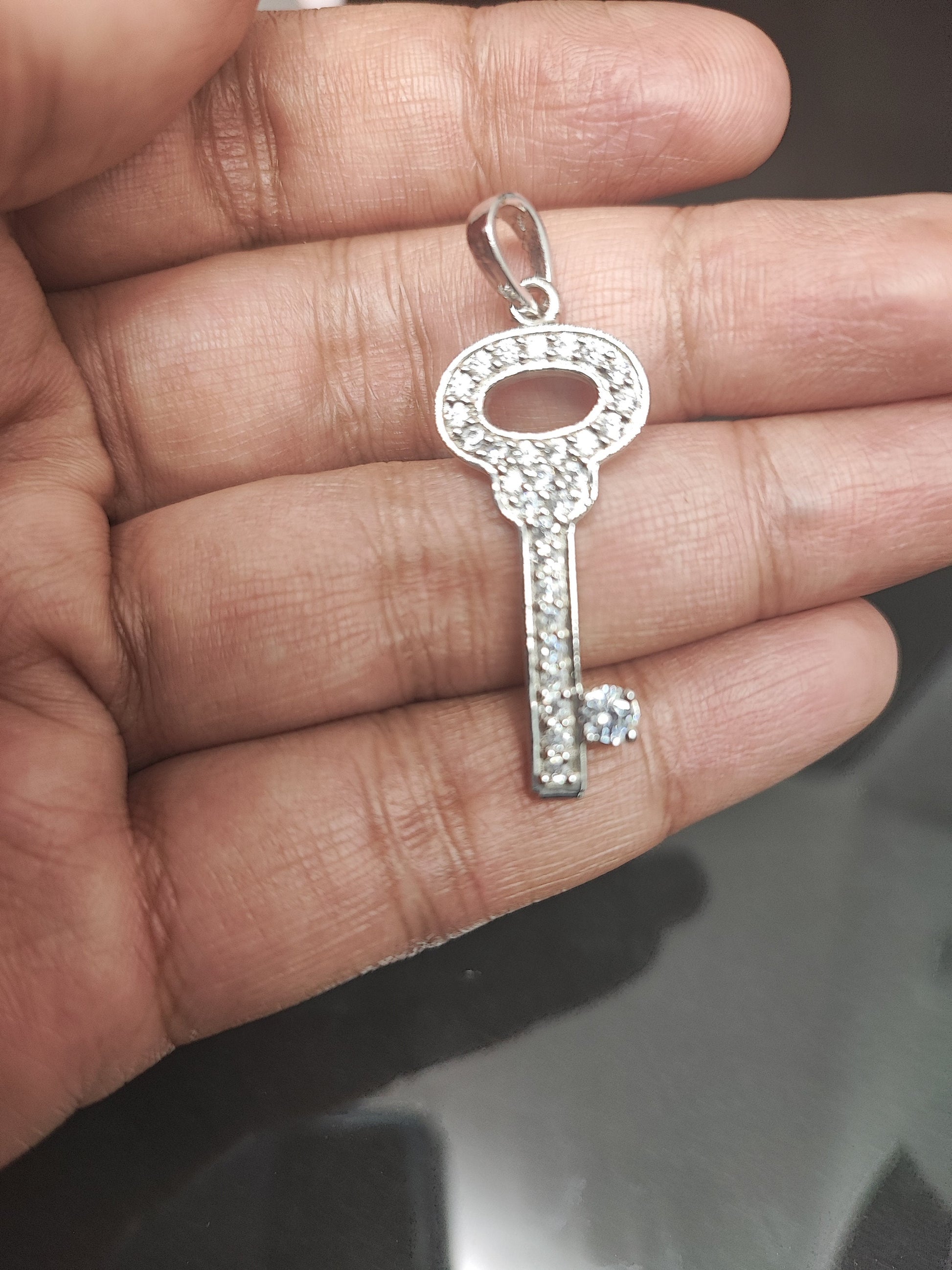 Key Necklace / Moissanite Key Pendant/Moissanite Necklace / Key Charm Necklace / 925 Solid Silver Key Necklace /Moissanite Key Charm