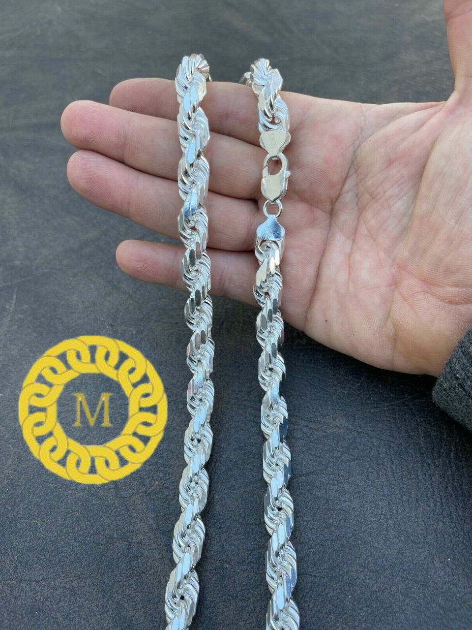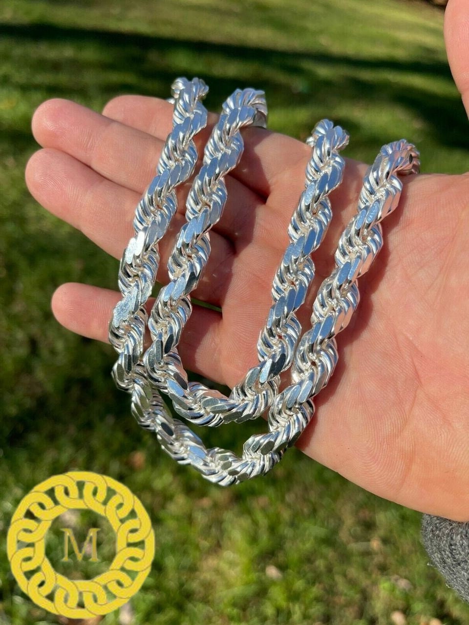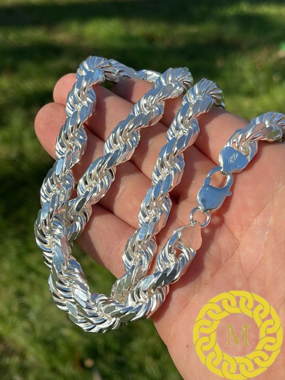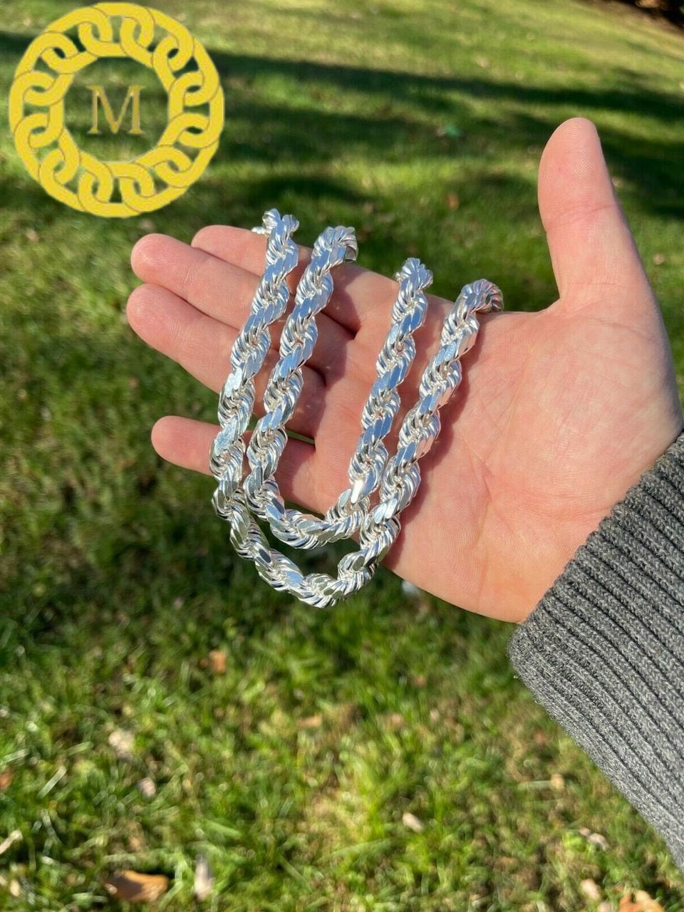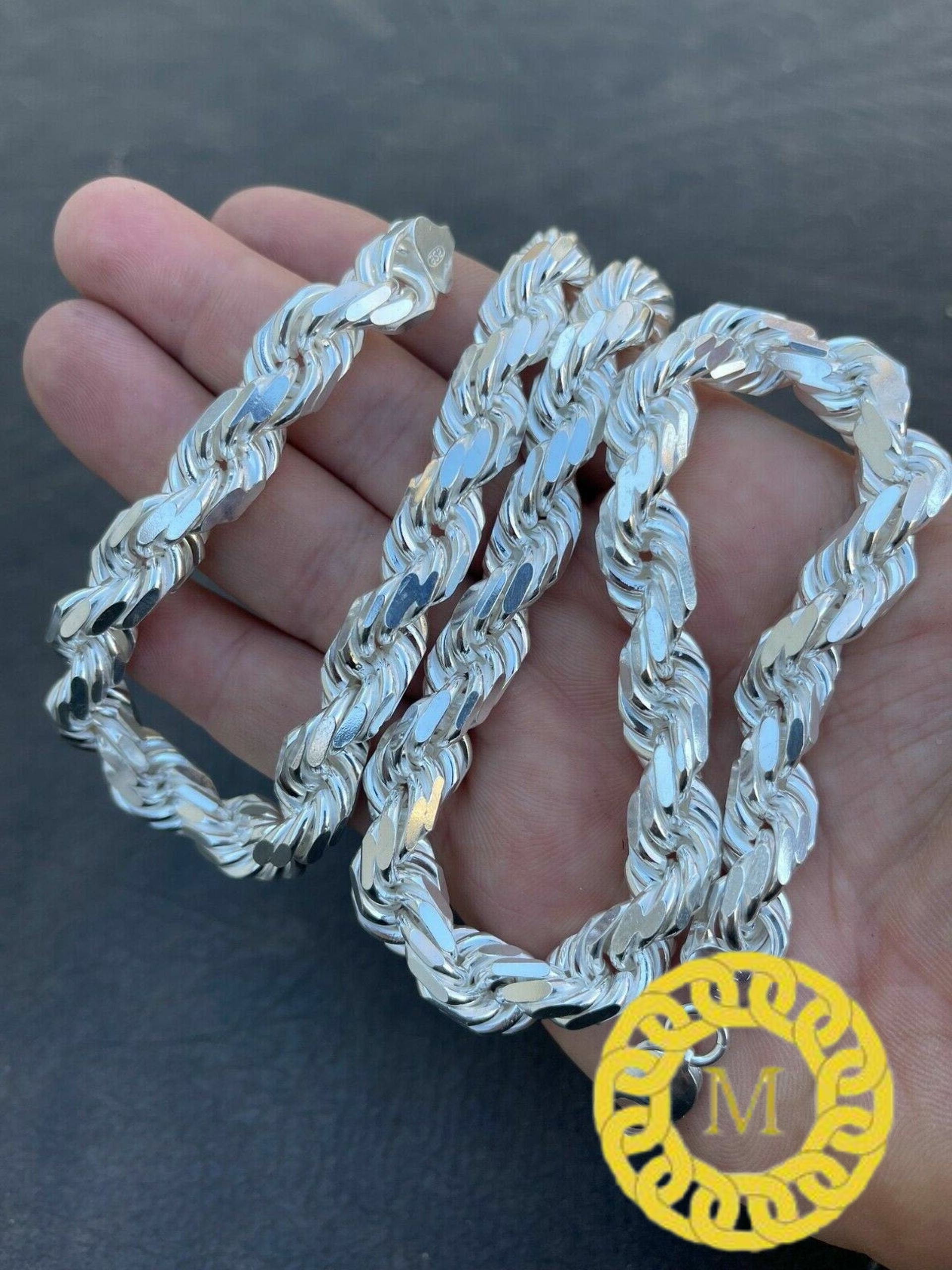 Men's 11 MM Real Solid 925 Sterling Silver Diamond Cut HEAVY SOLID Rope Chains 18" - 30", Rope Chain