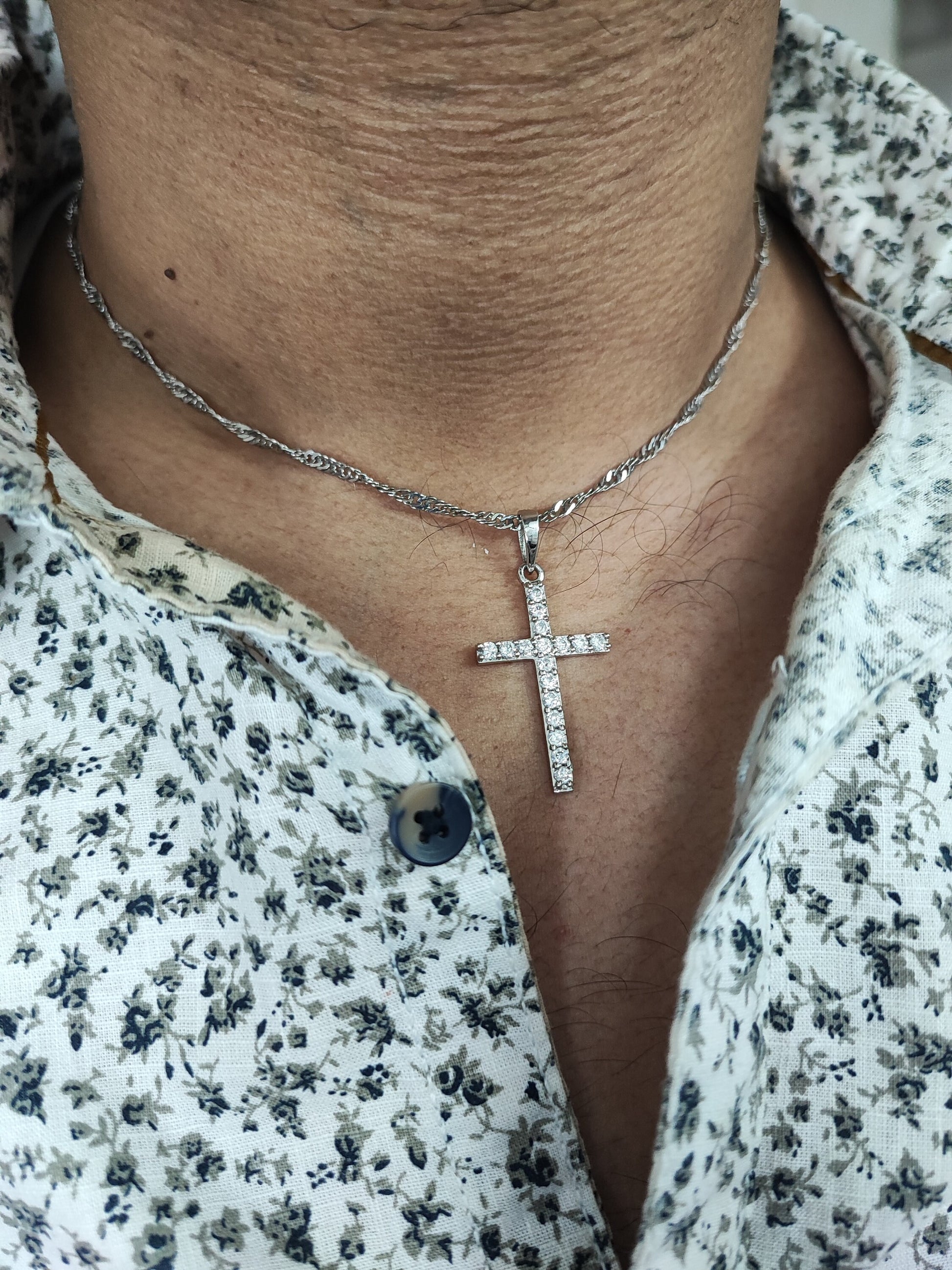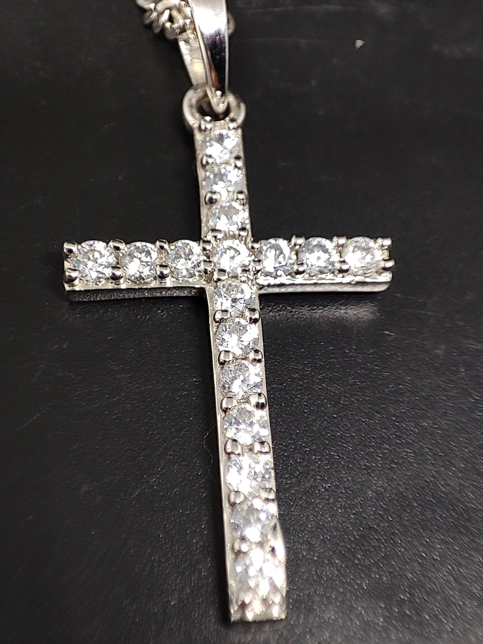 Men's or Women's MOISSANITE Solid 925 Sterling Silver Tennis Cross Pendants, Moissanite Cross,Super shining cross!! PASSES DIAMOND Tester!!!