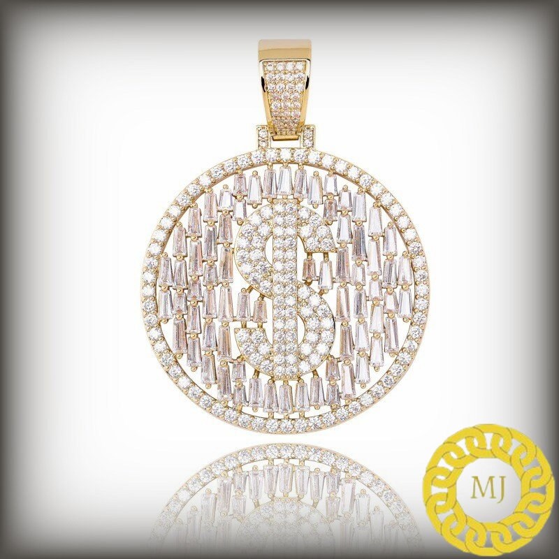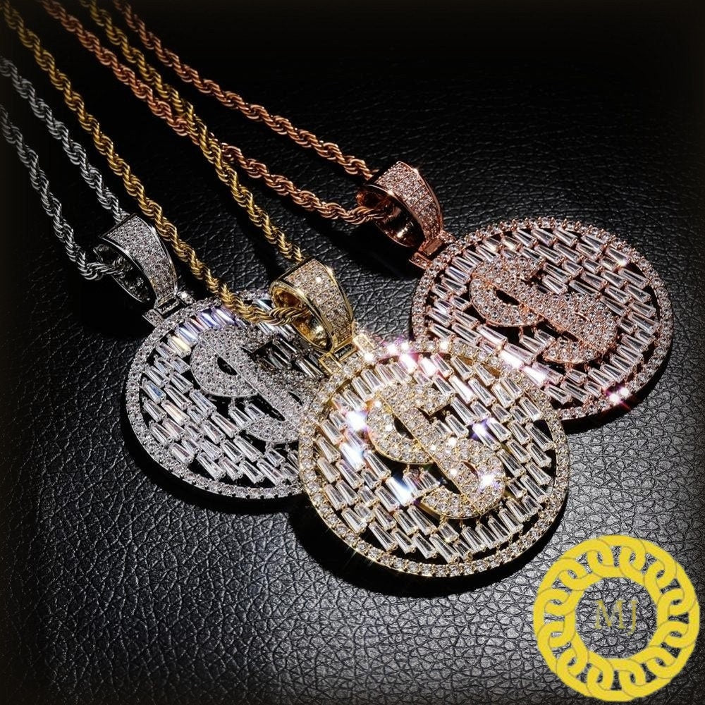 Men's Solid 925 Sterling Silver Iced Out Dollar Sign Money Pendant Baguette Diamond* Hip Hop Rapper Chain Necklace 16" - 30" Rope chain 4 mm
