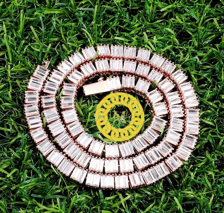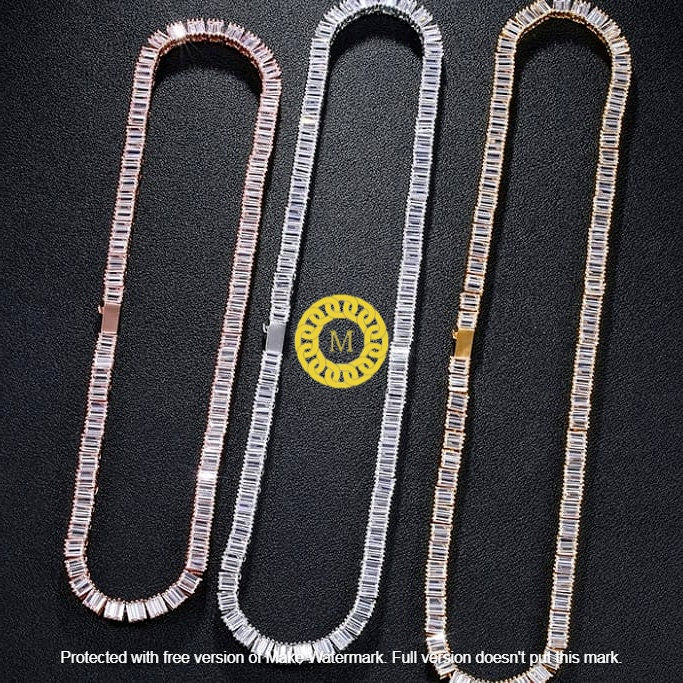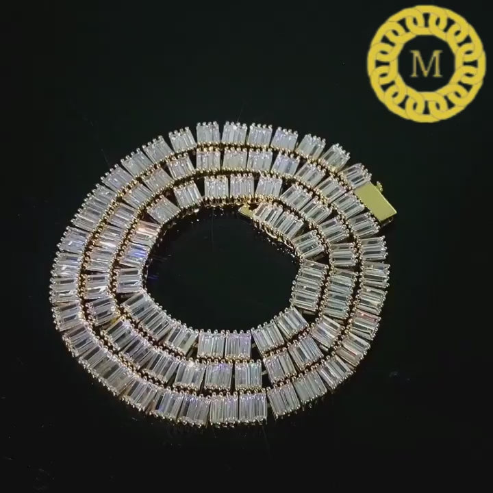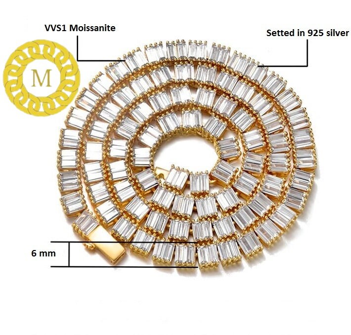 Men's Women's Solid 925 Sterling Silver Iced Out Baguette VVS1 D Moissanite ,Tennis Cluster Chain 18" 20" 22" 24" ,Pass The Diamond Tester