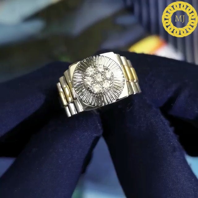 Micro Pave Set Diamond Ring, VVS1 Moissanite Iced Out Diamond Ring For Men , Wedding Groom's Ring, Diamond Signet Ring, Hip-Hop Men's Ring