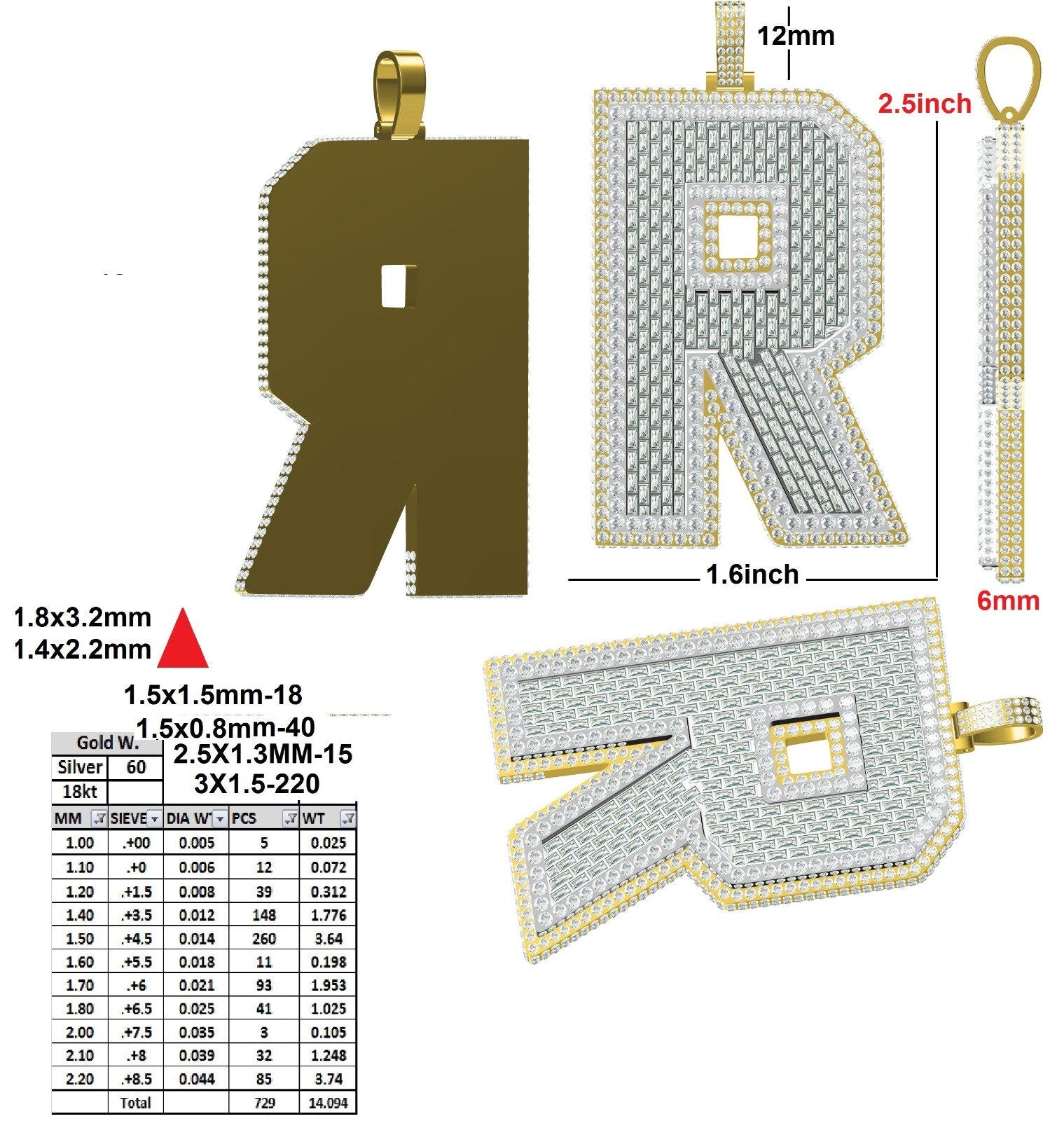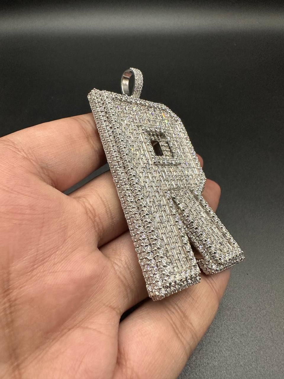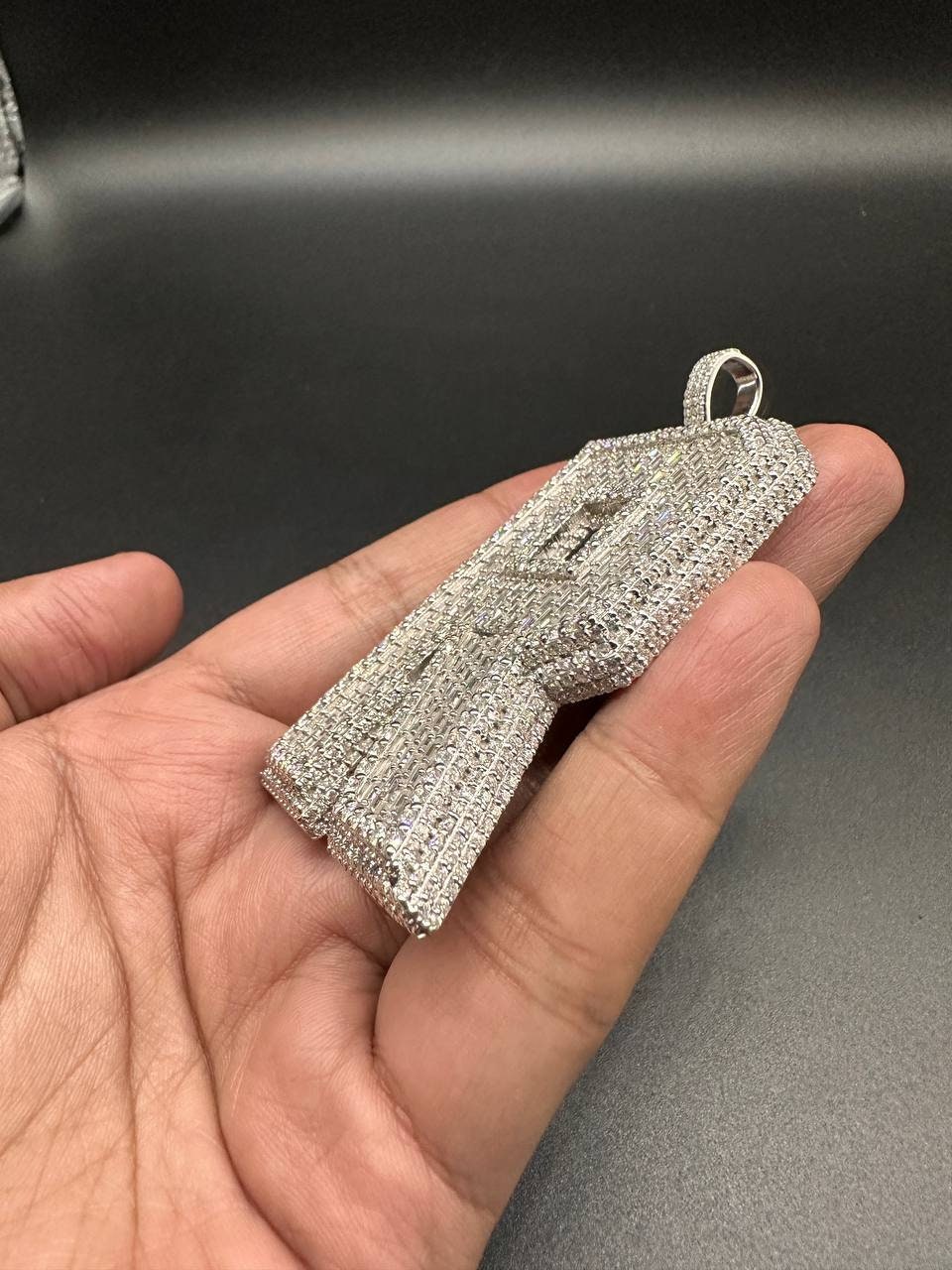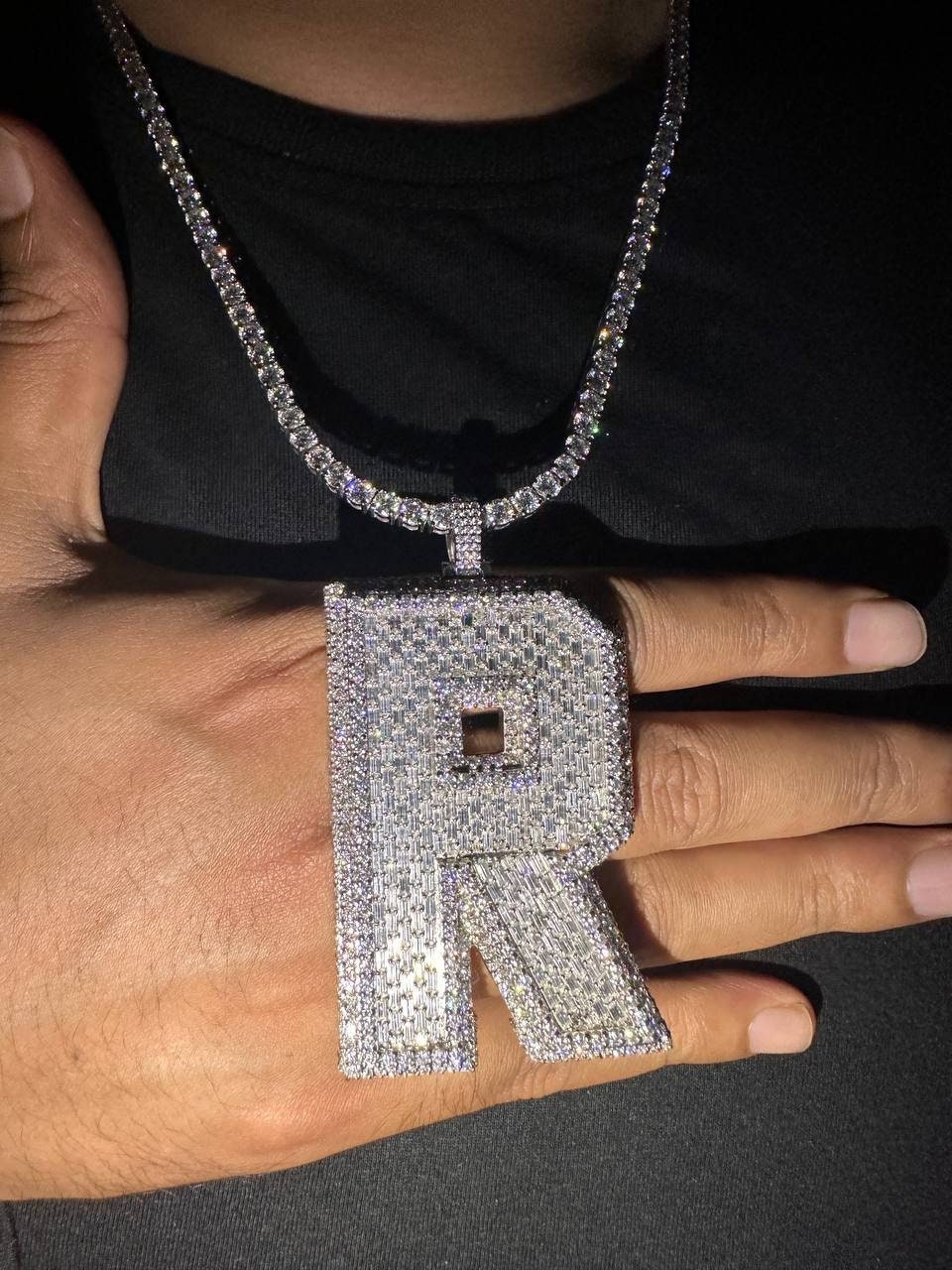 Moissanite Baguette Font Hip Hop Custom Name Necklace,Iced Out Pendant,Initial R Letter Personalized Pendant,Icy Necklace ,R letter pendant