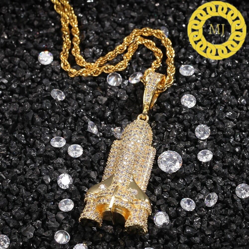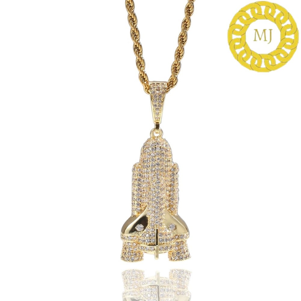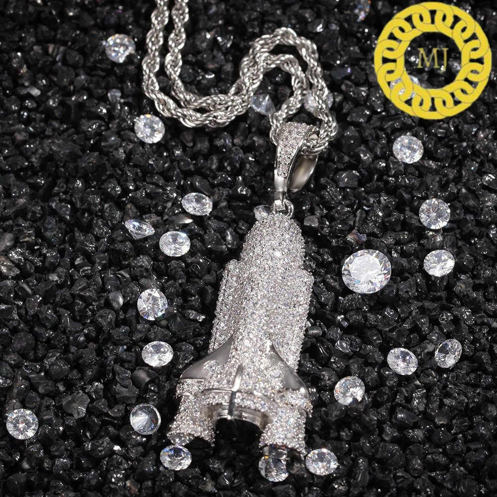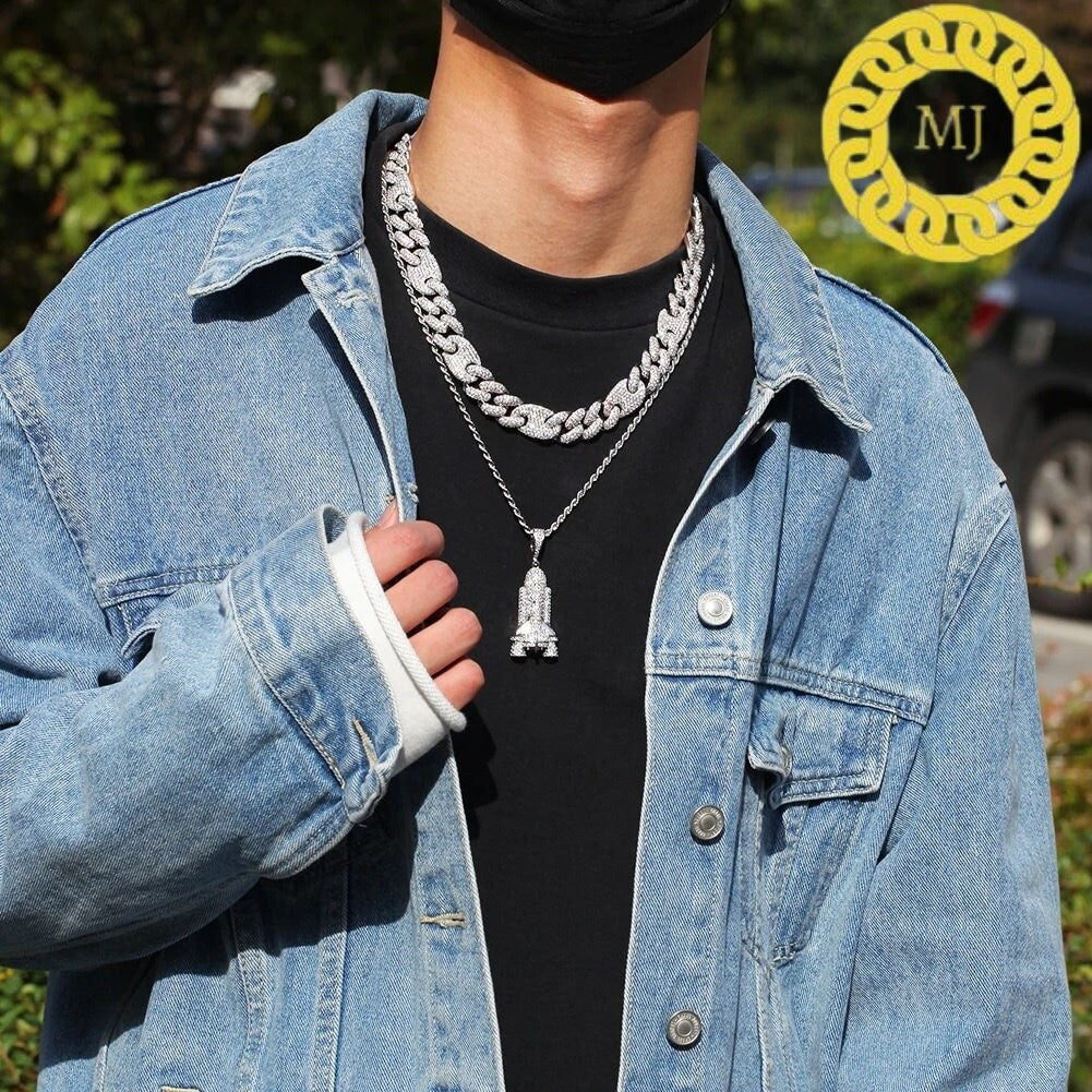 Moissanite diamond 3D Rocket Spacecraft Pendant Necklace, Silver 925,Icedout Rocket Pendant,Flawless VVS Moissanite jewelry,Rocket jewelry