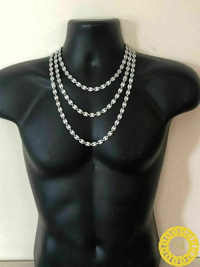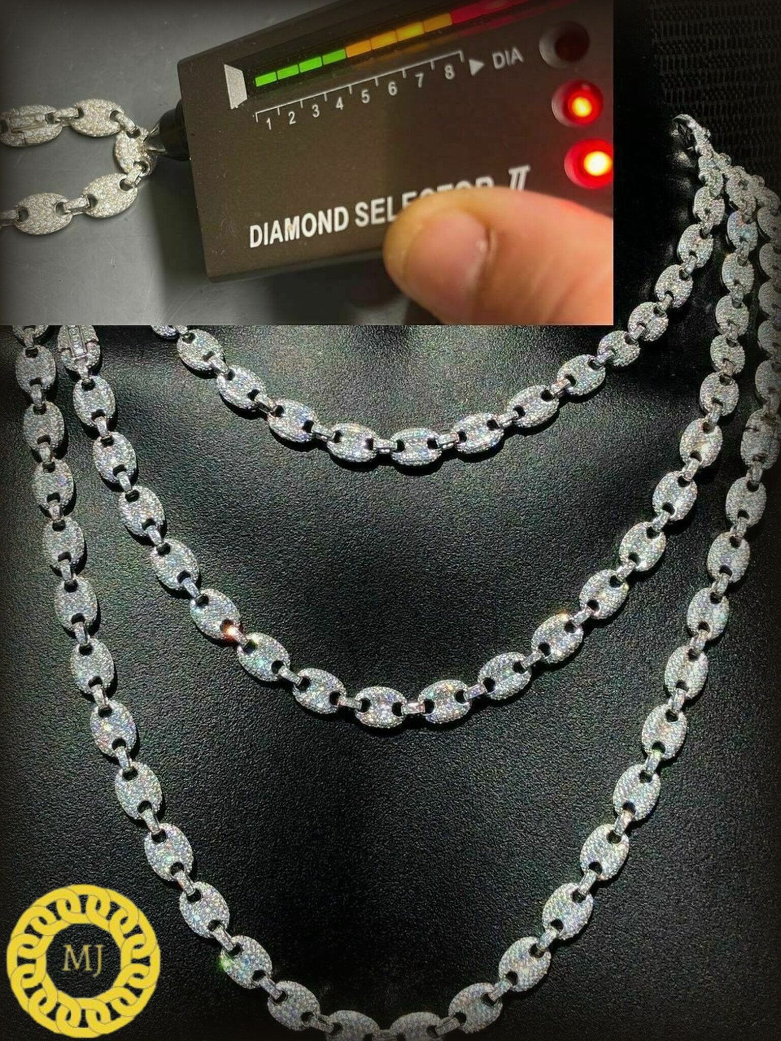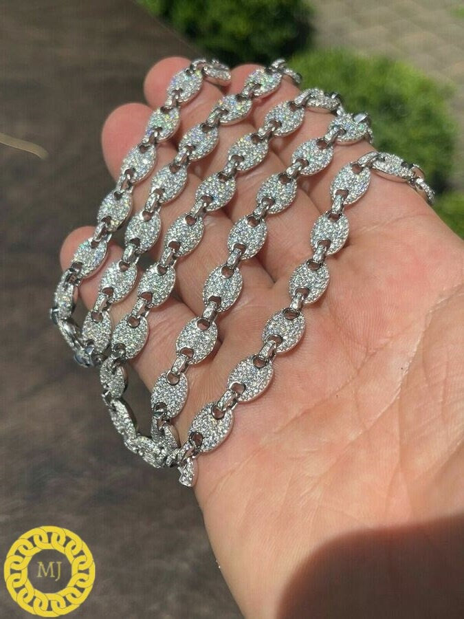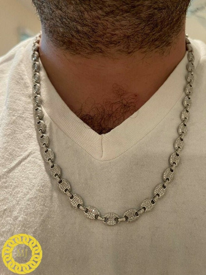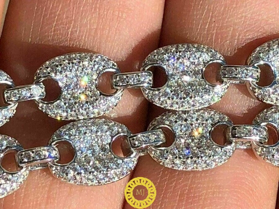 Moissanite VVS1 diamonds Solid 925 Sterling Silver Men's Mariner Puff Links Iced out Moissanite Chain-8mm wide 18-28" Inch" 18k Gold plated