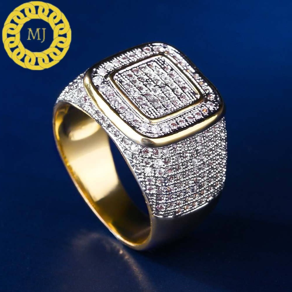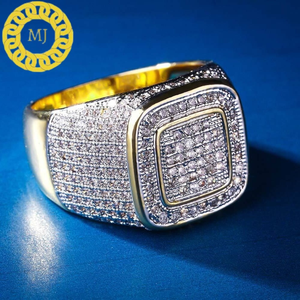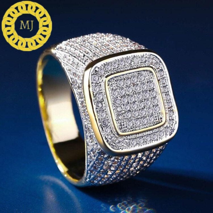 Square Micro Pave Set Diamond Ring, Moissanite Iced Out Diamond Ring For Men , Wedding Groom's Ring, Diamond Signet Ring, Hip-Hop Men's Ring