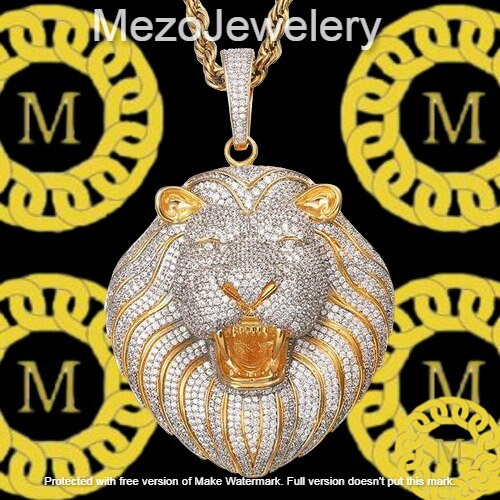 Sterling Silver 925 Fully Iced Out Lion Head Moissanite Pendant, Men's Hip hop pendant , VVS1 D colour Moissanite