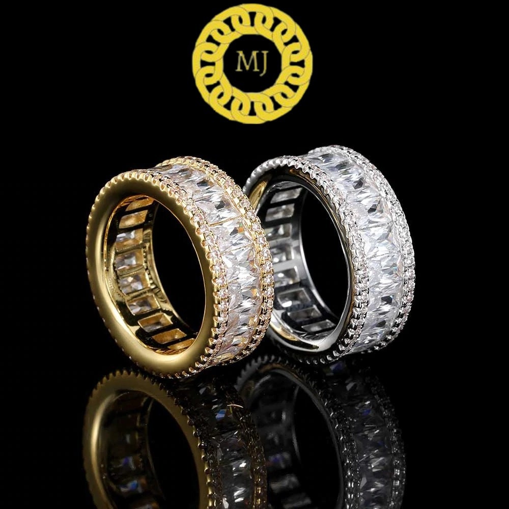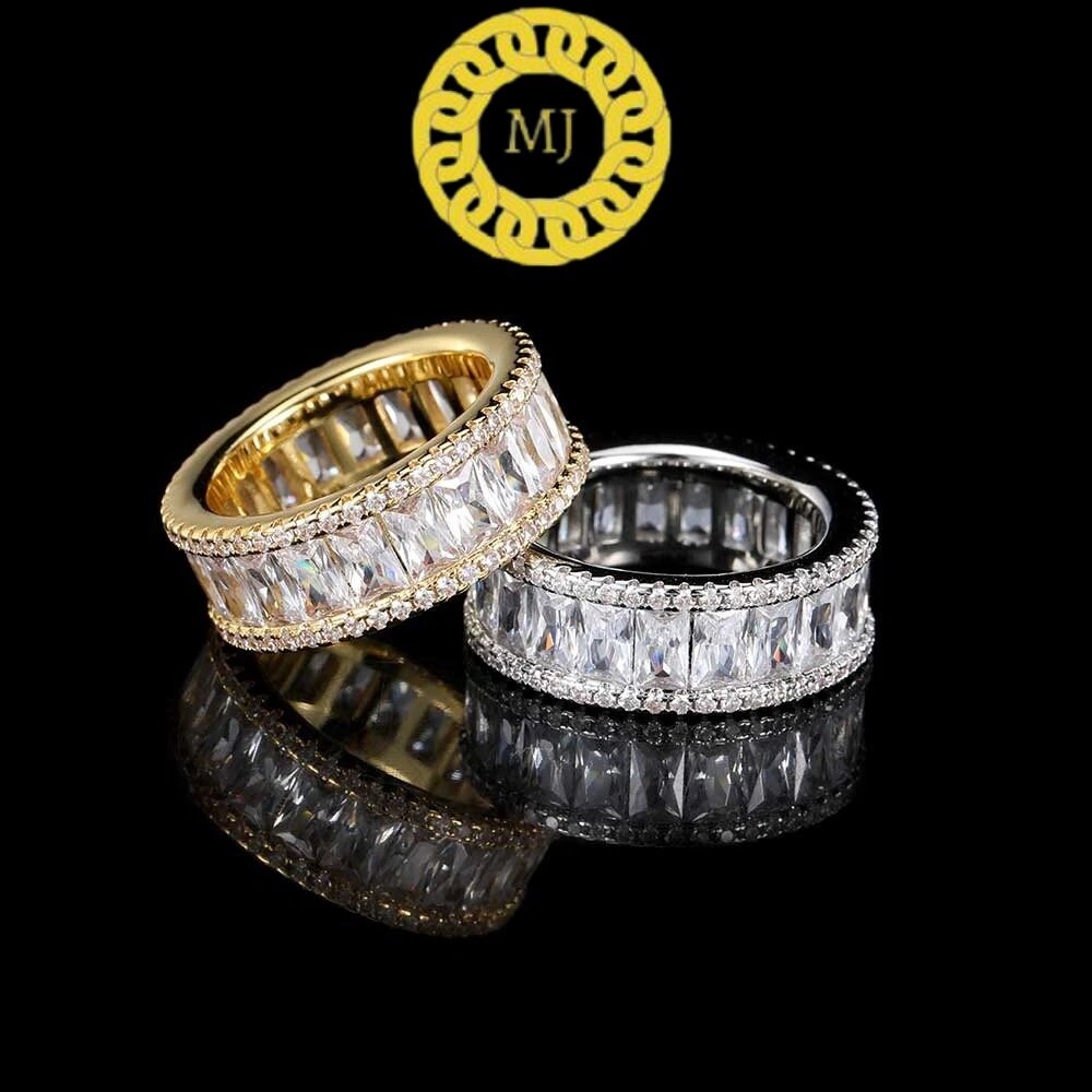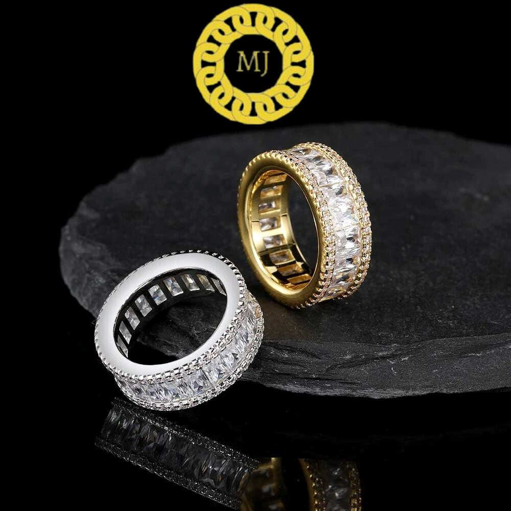 Unique men's Moissanite baguette Eternity band | men's band in Sterling Silver | 8mm Infinity band for men | Gifts for him| ICY Hiphop band
