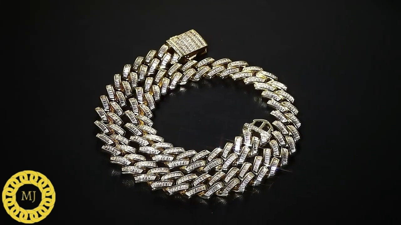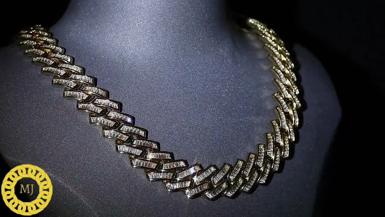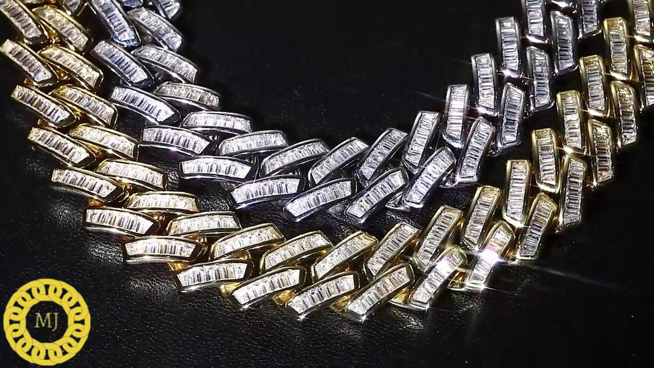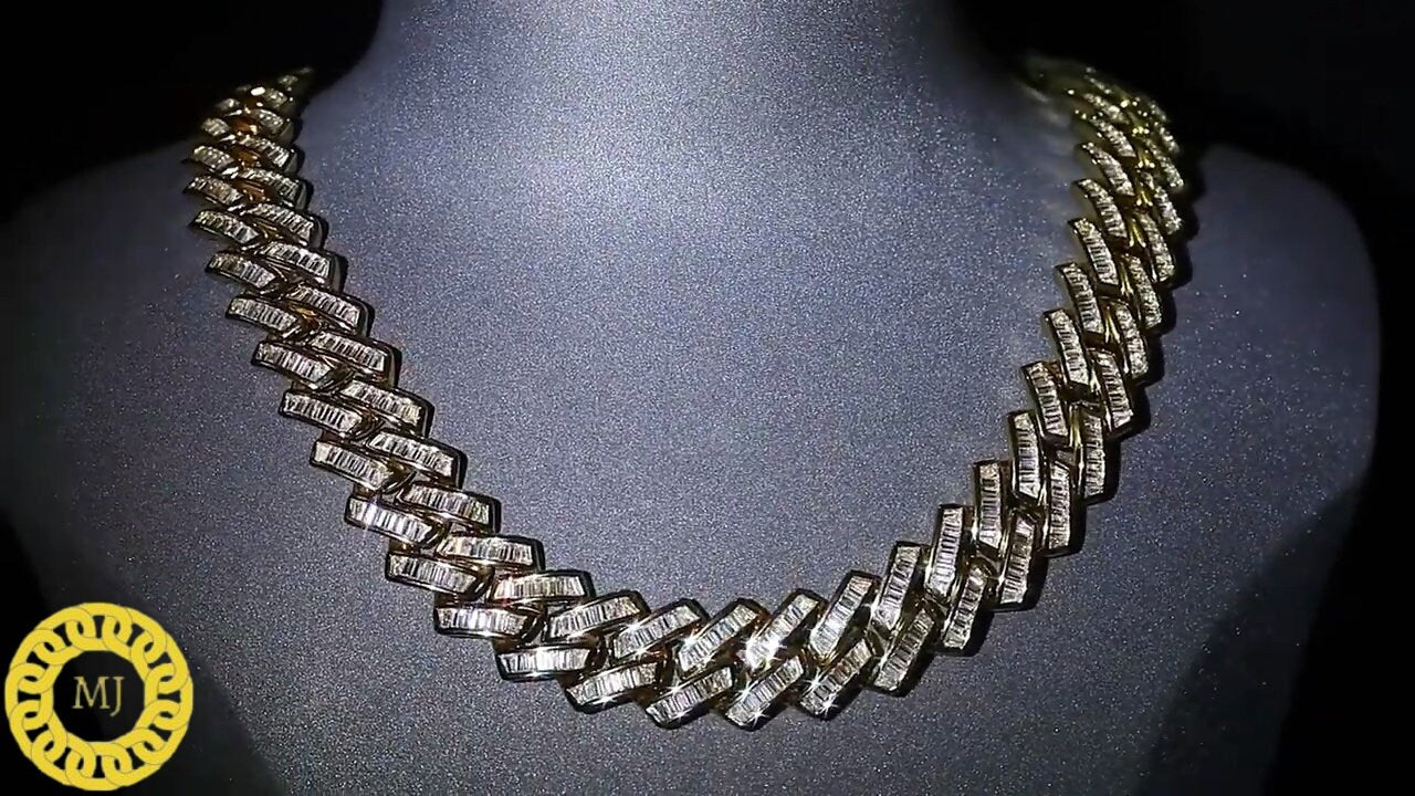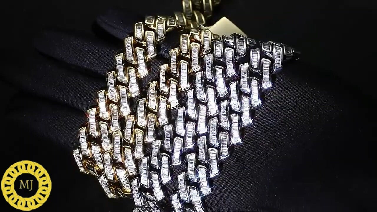 VVS1 Baguette Moissanite Diamonds Pass Tester | Miami Cuban Chain | 18mm 16-28” Fine Quality Box Clasp | HipHop Necklace|HeavyCuban Necklace